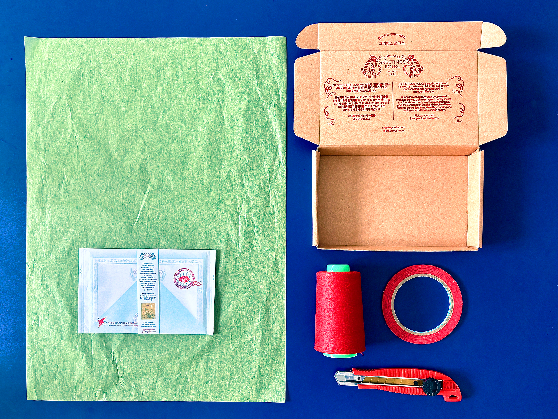 위해 완충재 대신 실로 박스와 내용물을 고정하여