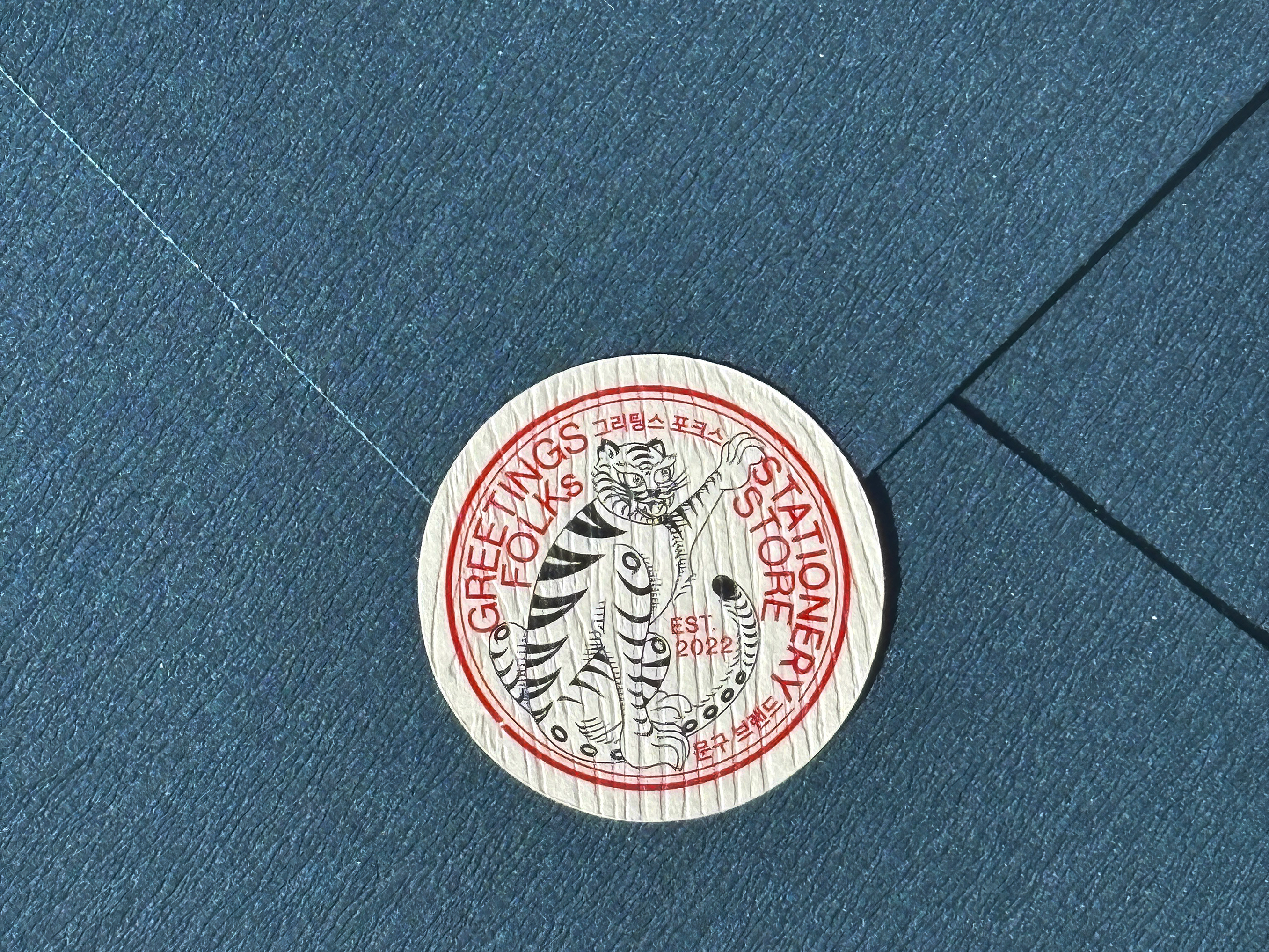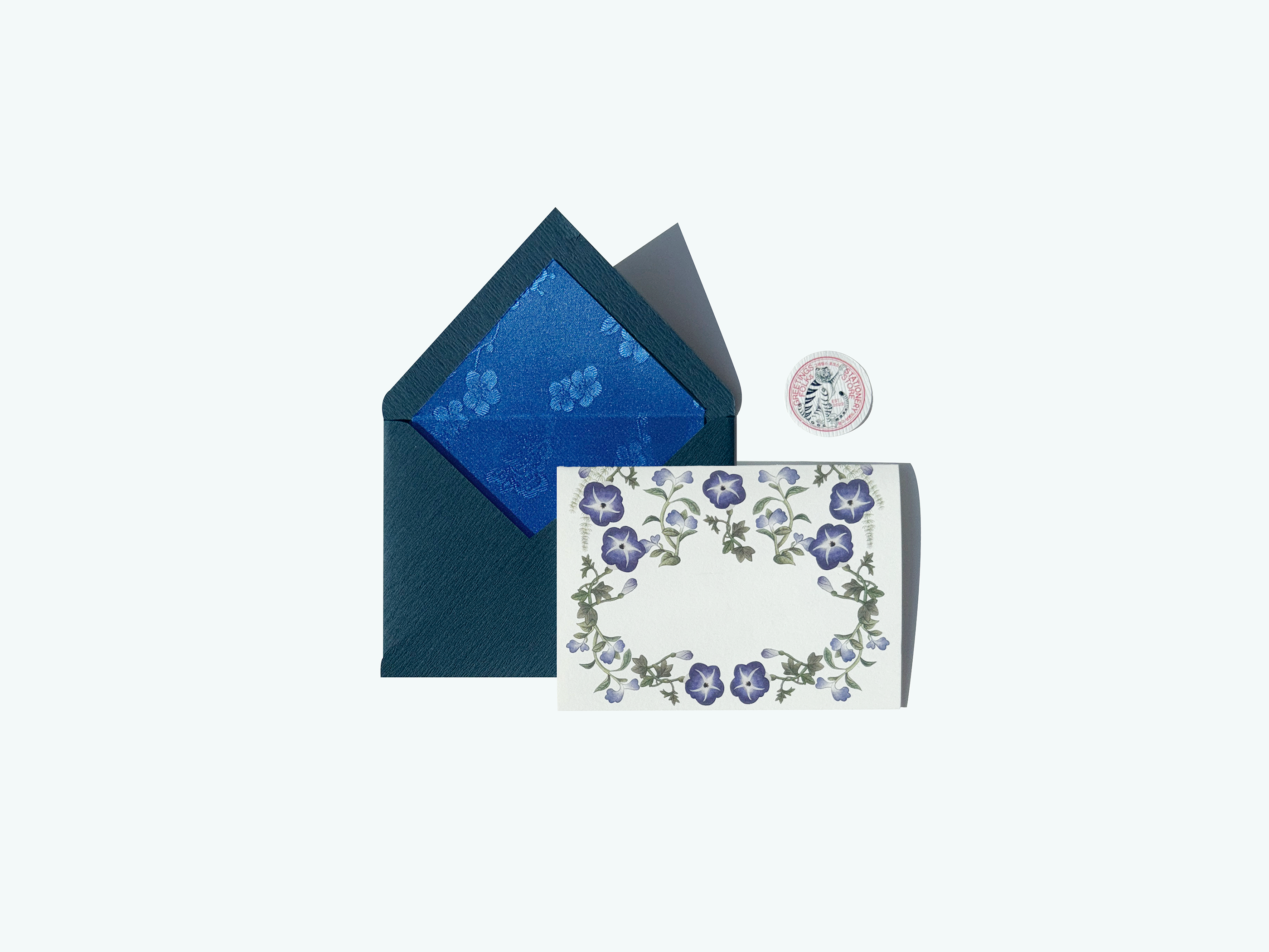 봉투는 옛 보자기에서 영감을 받아 현대적으로 재해석했습니다. 여름에서 가을로 넘어가는 밤의 질감을 담았으며, 안쪽에는 꽃빛을 은은히 반사하는 파란 실크지를 덧대어 단아하면서도 화려한 분위기를 더했습니다. 모든 봉투는 한 장 한 장 손으로 정성스럽게 제작되었고, 선물을 곱게 싸던 옛 마음처럼, 당신의 마음 또한 고이 담아 전할 수 있습니다.